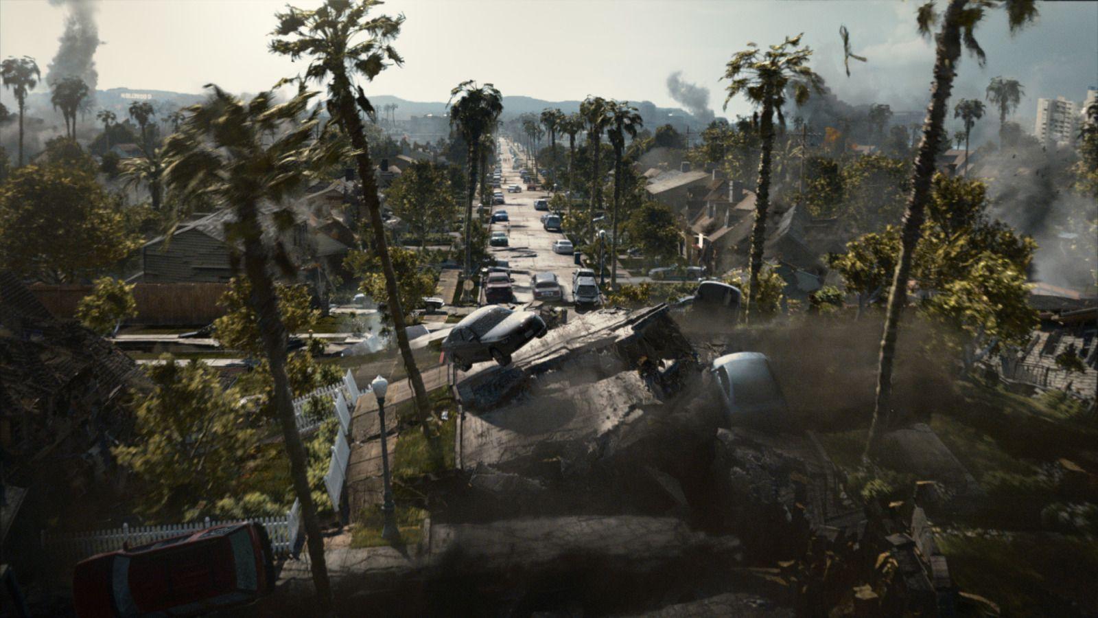 lantas menerjang California, membuat jalanan amblas, jalan layang ambruk,